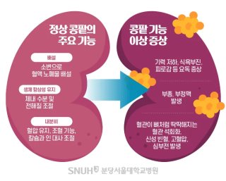 콩팥은 체내 염분과 수분을 조절해 혈압을 유지하는데, 기능이 떨어지면 혈관이 수축하고 혈압이 점점 높아진다.