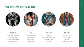 연골은 무릎뼈 사이에서 완충 작용을 해주는 조직인데, 이 연골이 닳아 얇아지면 뼈와 뼈가 직접 부딪혀 통증을 유발한다.
