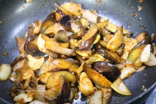 가지는 큼직하게 썰어서 볶다가 양념 넣고 자작하게 조리면
