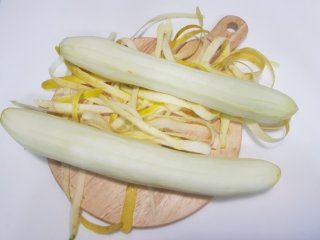 - 노각 1개, 껍질 긁고 씨 파낸 뒤 채썰기