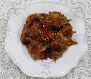 - 고추장 1, 고춧가루 1, 간장 2, 설탕 1, 마늘, 생강, 물 1.5컵